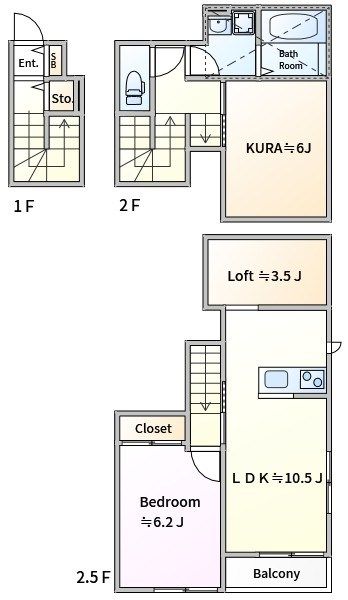 | 築年月 | 2022年3月 | 間取り | 1LDK( LDK10.5畳(2階)/洋室6.2畳(2階) ) | 専有面積 | 47.61m2 |
