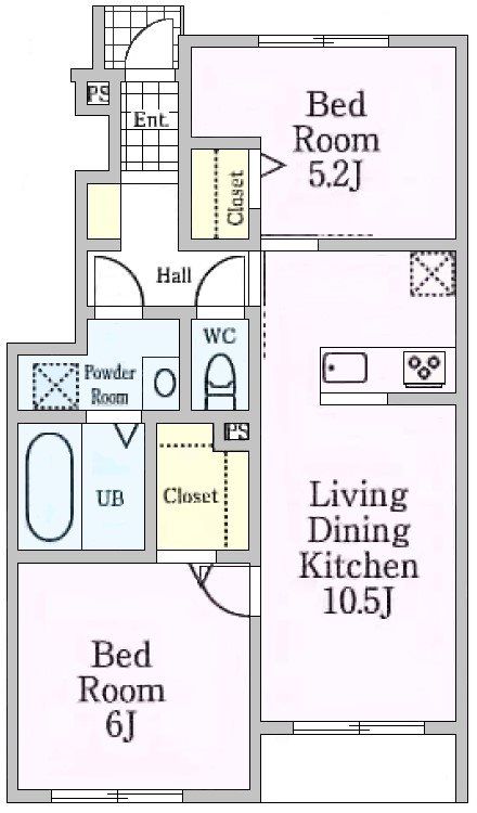 | 築年月 | 2014年3月 | 間取り | 2LDK( LDK10.5畳/洋室6畳/洋室5.2畳 ) | 専有面積 | 51.75m2 |