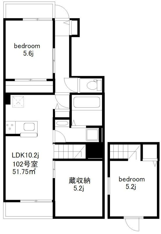 | 築年月 | 新築 | 間取り | 2LDK( LDK10.2畳/洋室5.6畳/洋室5.2畳 ) | 専有面積 | 51.75m2 |