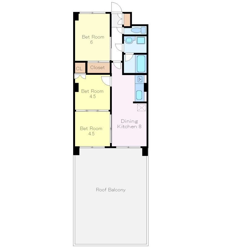 | 築年月 | 1994年7月 | 間取り | 3DK( 洋室4.5畳(4階)/洋室4.5畳(4階)/洋室6畳(4階)/DK8畳(4階) ) | 専有面積 | 57.1m2 |