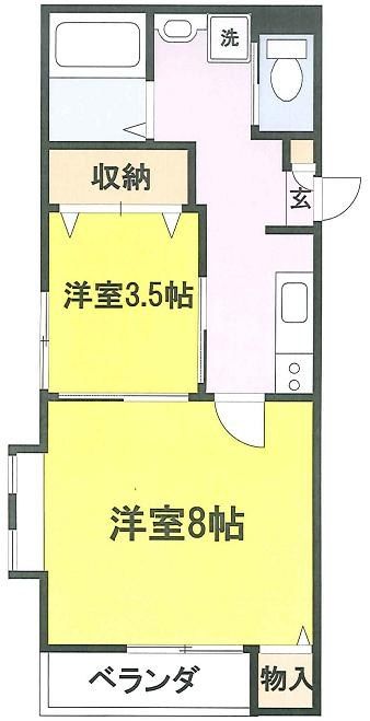 | 築年月 | 2007年3月 | 間取り | 2K( 洋室8畳(2階)/洋室3.5畳 ) | 専有面積 | 33.95m2 |