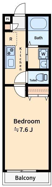 | 築年月 | 2014年7月 | 間取り | 1K( 洋室7.6畳(2階)/K2.5畳(2階) ) | 専有面積 | 24.83m2 |