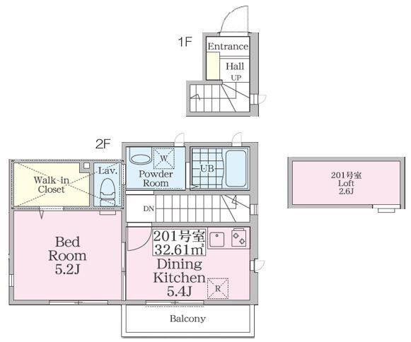 | 築年月 | 2022年11月 | 間取り | 1DK( DK5.4畳(2階)/洋室5.2畳(2階) ) | 専有面積 | 32.61m2 |