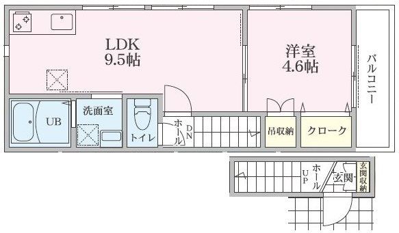 | 築年月 | 2023年3月 | 間取り | 1LDK( LDK9.5畳(2階)/洋室4.6畳(2階) ) | 専有面積 | 36.92m2 |
