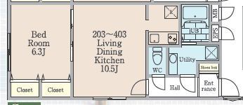 | 備 考 | *退去時ハウスクリーニング費用60,500円*退去時エアコンクリーニング費用13,200円/台(高性能タイプの場合27,500円/台)*1年未満の解約は賃料1ヵ月分の違約金がかかります。 |