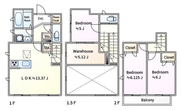 | 築年月 | 2022年3月 | 間取り | 3LDK( LDK13.7畳(1階)/洋室5畳(2階)/洋室6畳(2階)/洋室6.1畳(2階) ) | 専有面積 | 74.73m2 |