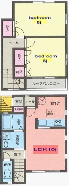 | 築年月 | 2008年5月 | 間取り | 2LDK( LDK10.9畳(1階)/洋室6.7畳(2階)/洋室6畳(2階) ) | 専有面積 | 60.45m2 |