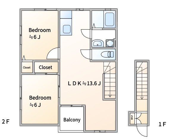 | 種別 / 構造 | アパート / 木造 | 主要採光面 | 南西 | 所在階 / 階数 | 2階 / 2階 |
