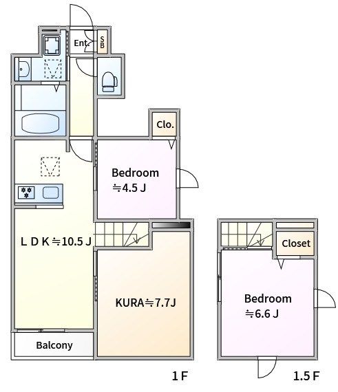 2LDK( LDK10.5畳/洋室4.5畳/洋室6.6畳 ) |